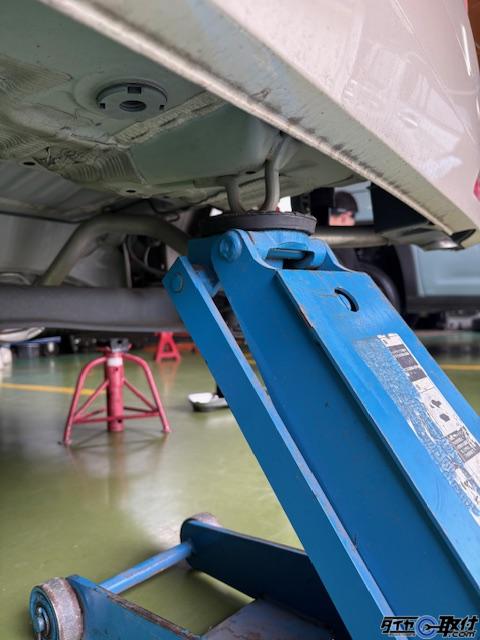 フロントは覗き込むと、黒い丸い突起物がありますのでそこでジャッキアップします。