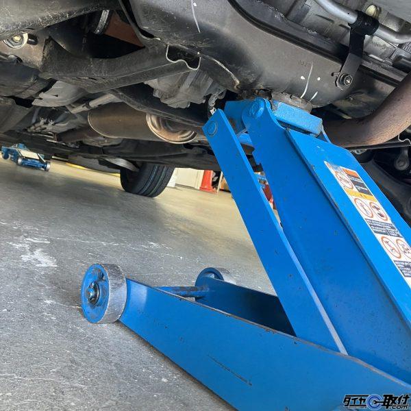 フロントはアンダーカバーとボディの境目の部分にジャッキアップポイントがあるのでそこでジャッキアップしております( ..)φメモメモ