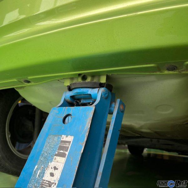 ジャッキアップ方法は何種類か存在するかと思いますが、今回はフロントが1点上げ、リアも1点で上げる方法となります。