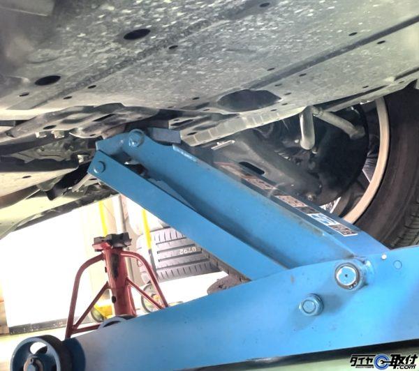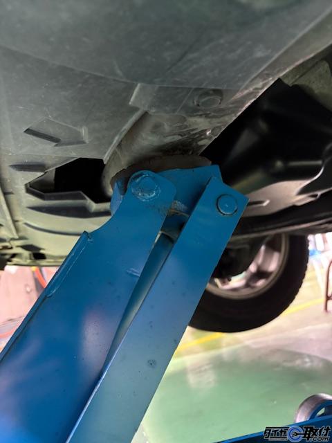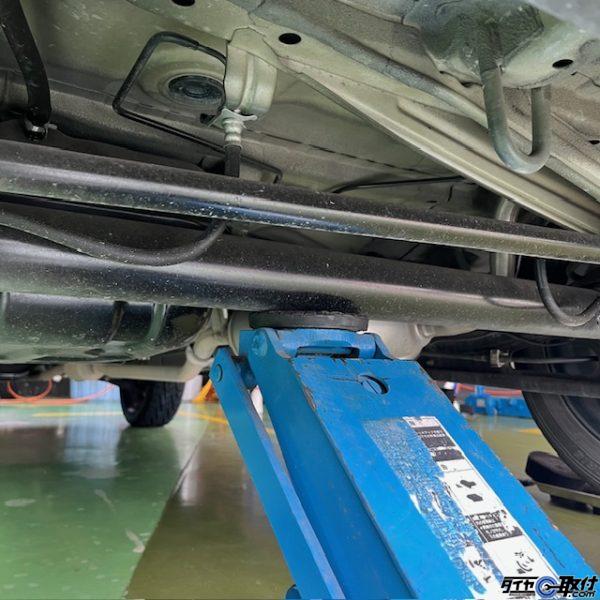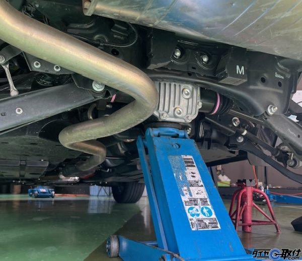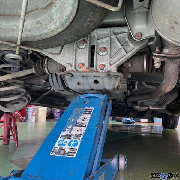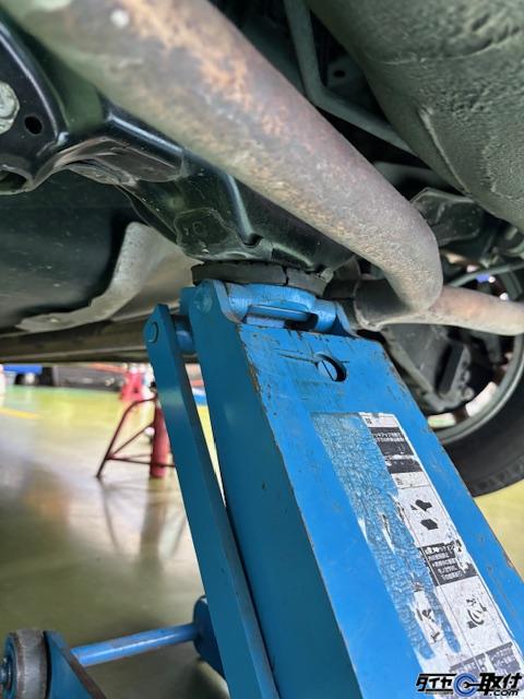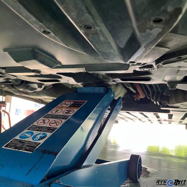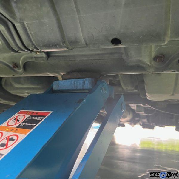 ジャッキアップポイントはフロントはアンダーカバー奥のメンバーの中央、リアはデフになります。