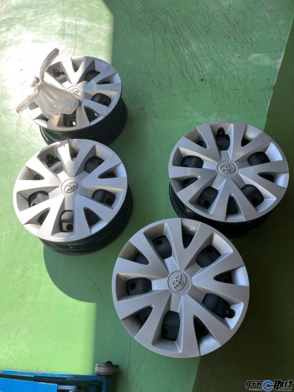 外した後の画像になっちゃってますが今回の作業内容が、お車についている純正スチールホイールとタイヤを外しまして、お客様がお持ち込み頂いたホイールに同タイヤを組み込んでお車にお取り付けになります。