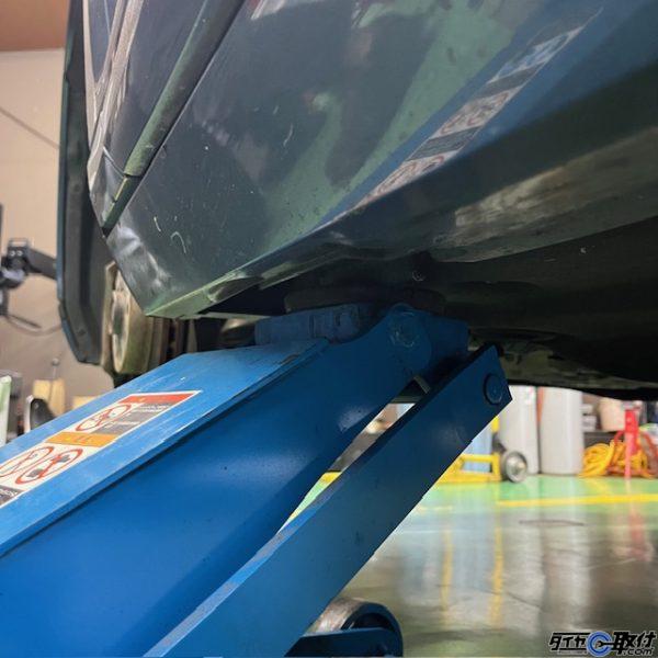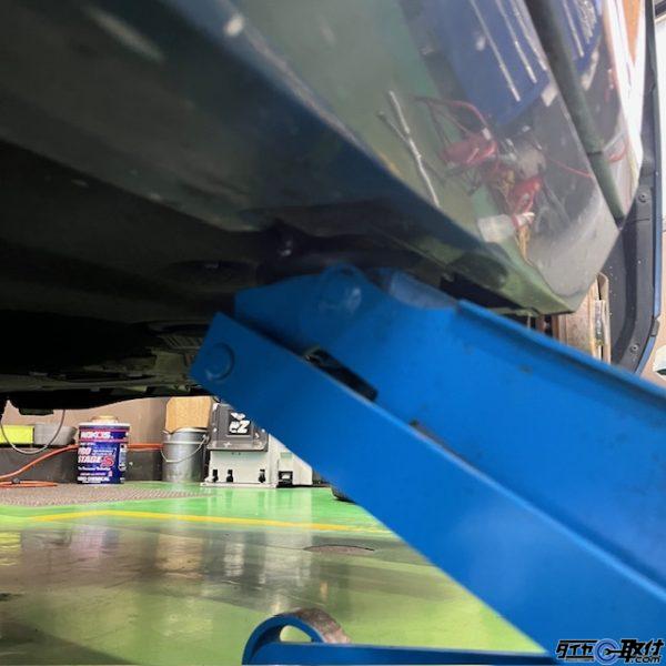 画像が少し暗くて申し訳ございませんが、ジャッキアップポイント周辺が凹んでいるので「ここら辺だよ!」というのを教えてくれていますね(笑)