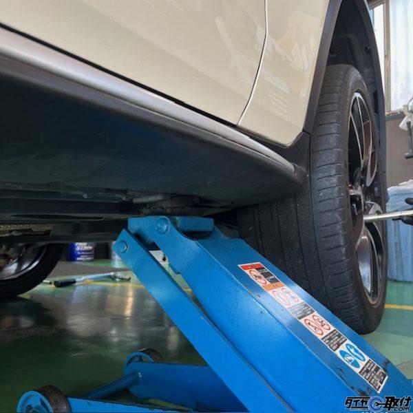 ジャッキアップ方法は複数存在しますが、今回当店ではサイドでのジャッキアップにて