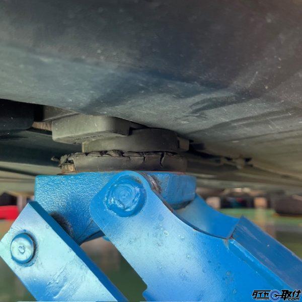 ジャッキアップ方法は複数存在しますが、今回当店ではサイドでのジャッキアップにて