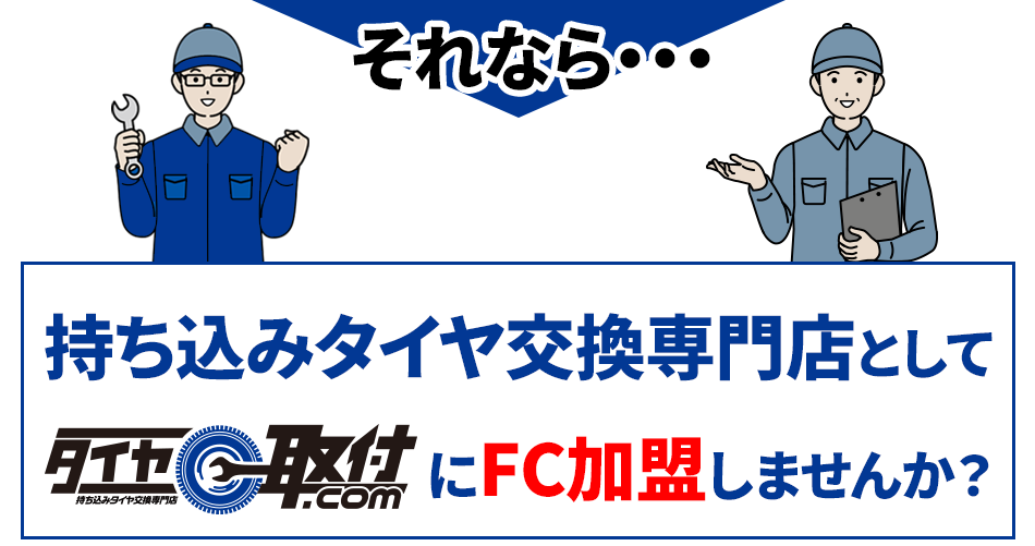 持ち込みタイヤ交換は在庫を抱える必要がないため、 省スペースかつ低資金で開業が可能です。 既存ビジネスとの組み合わせにより、 顧客単価アップや新たな収益源の確保 にもつながります。